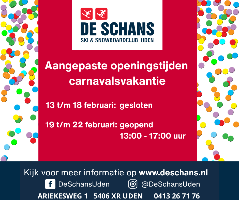jan172026 Tijdens de carnavalsvakantie zijn er andere openingstijden: 13 t/m 18 februari gesloten 19 t/m 22 februari geopend van 13:00 – 17:00 uur